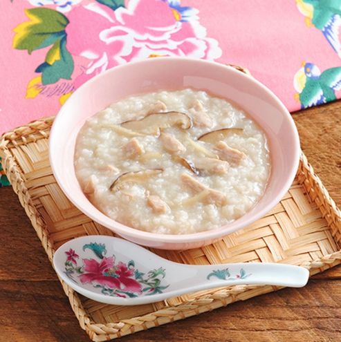 干し椎茸、生姜、豚もも肉が入った台湾のおかゆ。