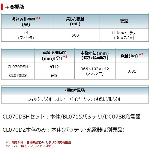 マキタ 7.2V充電式クリーナー CL070DSH カプセル式+スライドトリガスイッチ