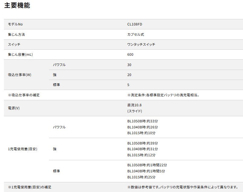 連続使用時間(min)[分] | パワフル:約10強:約12 |