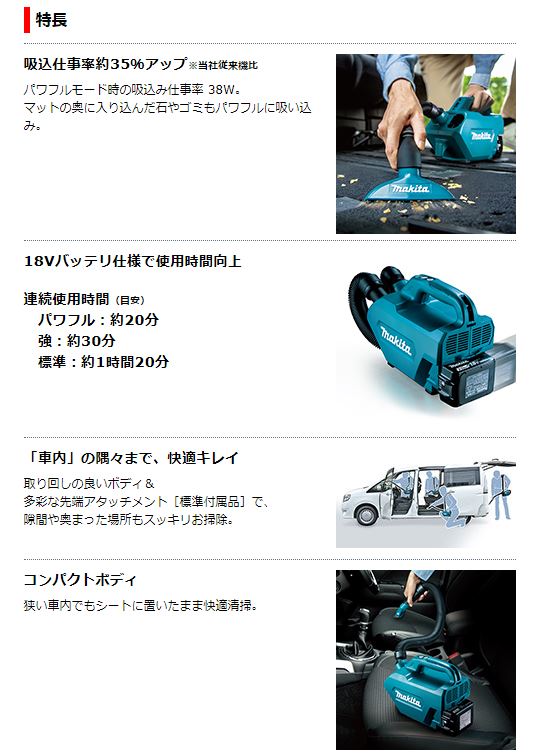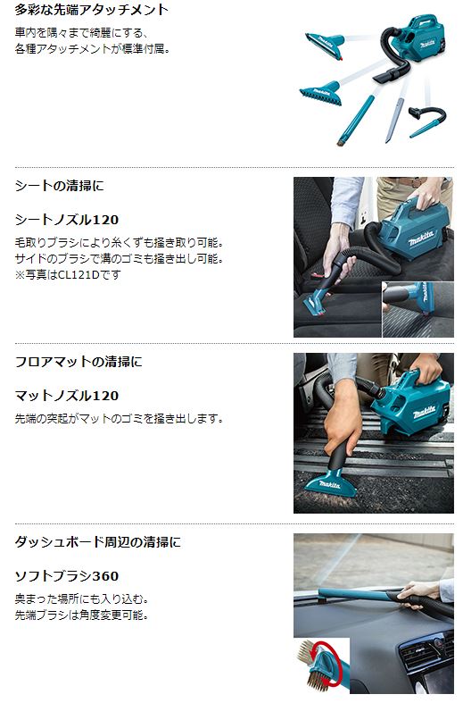 マキタ 18V充電式クリーナー CL184DZ 本体のみ・ソフトバッグ・5種類のノズル付