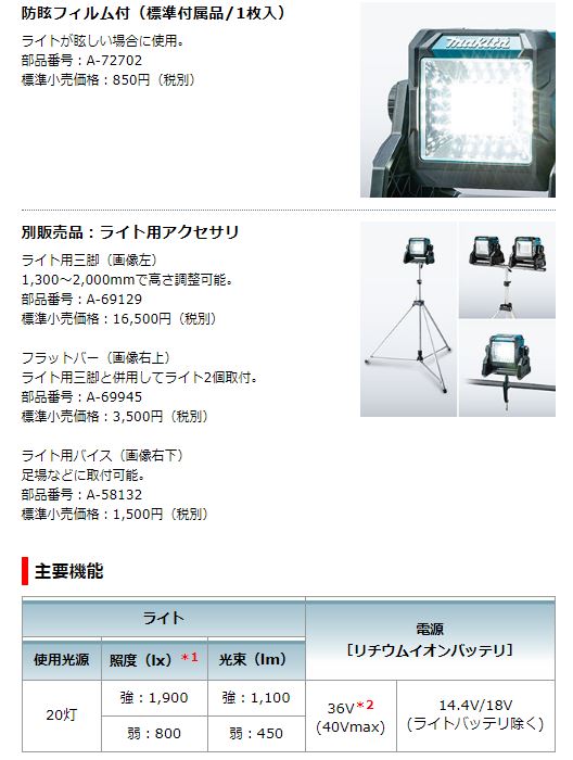 マキタ 充電式スタンドライト ML003G 本体のみ★ [ML003G]