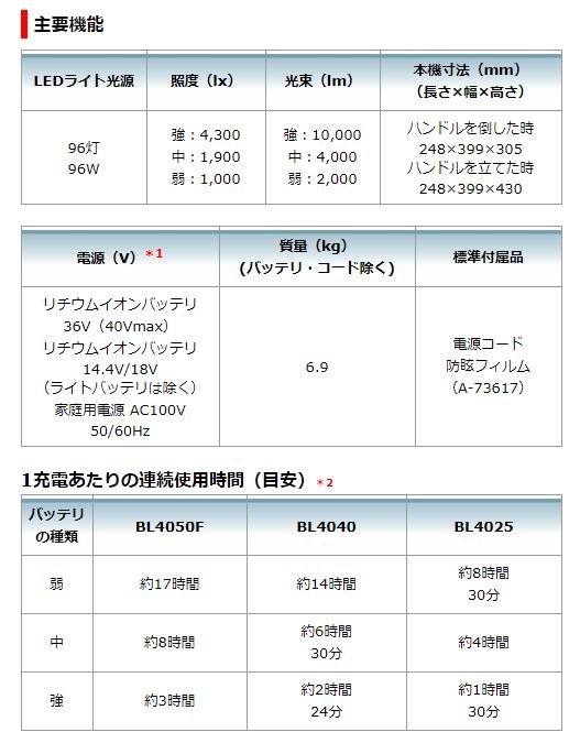 ・光束 強:10,000lm/中:4,000lm/弱:2,000lm