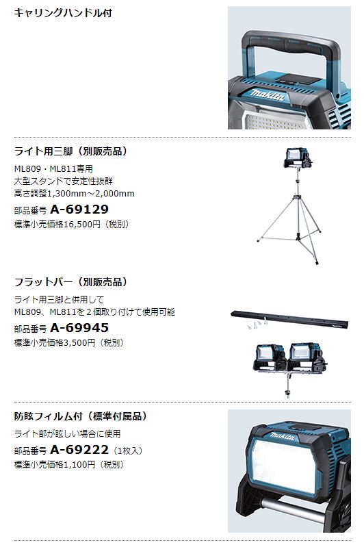 マキタ 充電式スタンドライト ML809 本体のみ★ [ML809]