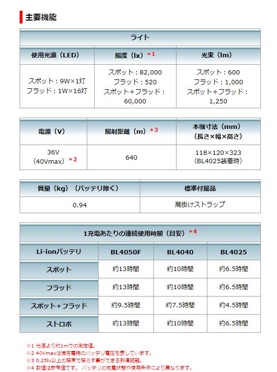 ・本機寸法(長さx幅x高さ):118×120×323mm(BL4025装着時)