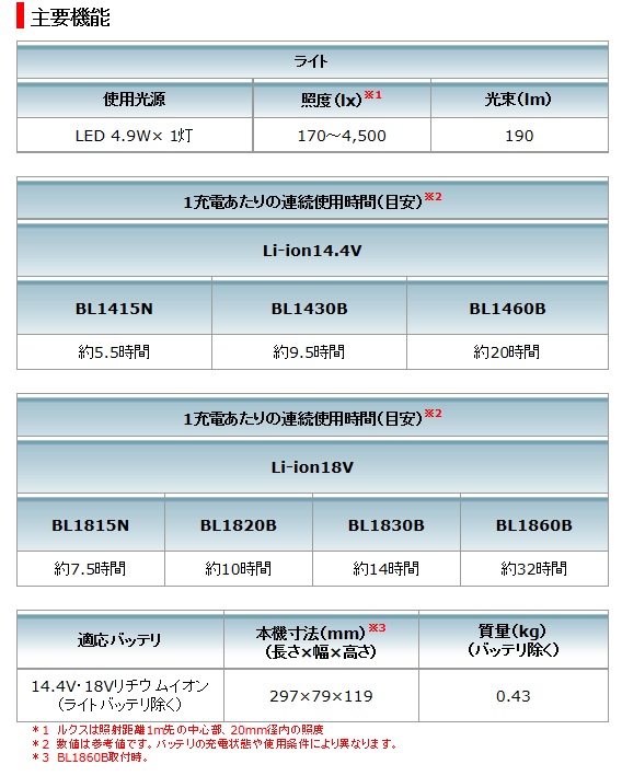 マキタ 14.4V/18V充電式フラッシュライト ML808 本体のみ※バッテリ・充電器別売 [ML808]