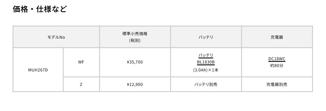 マキタ 18V充電式ミニ生垣バリカン MUH267DWF【バッテリBL1830B・充電器DC18WC付】