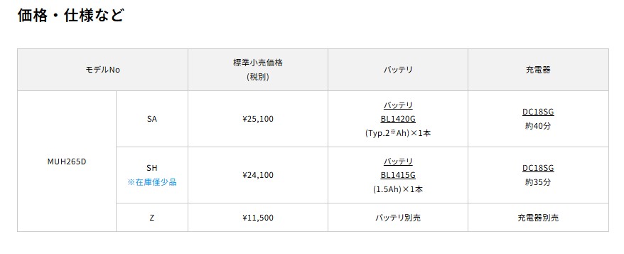 マキタ 14.4V充電式ミニ生垣バリカン MUH265DSA バッテリBL1420G・充電器DC18SG付 [MUH265DSA]